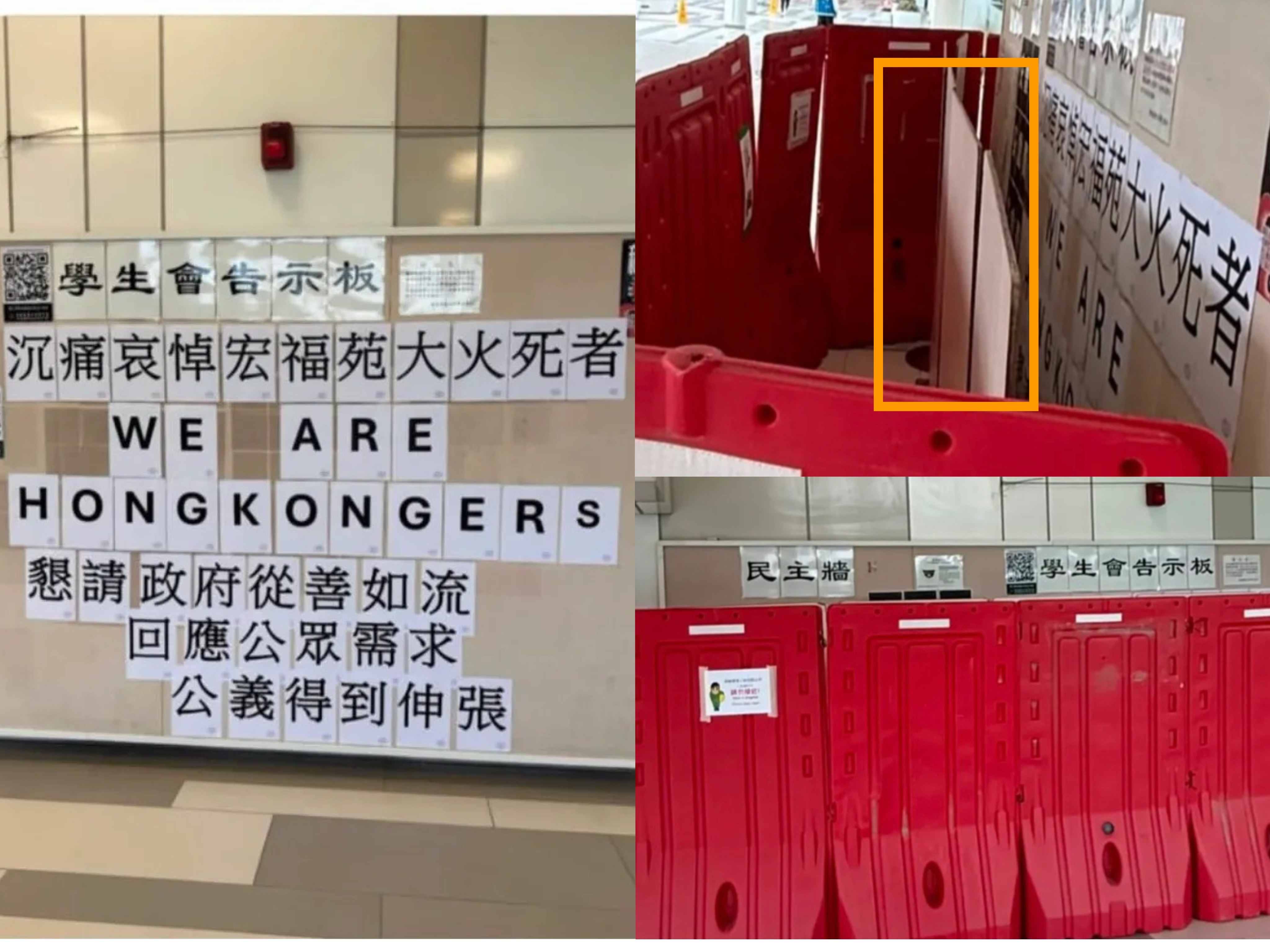 照片為作者提供 【聚傳媒李宗衡專欄】這張照片從香港浸會大學流傳出來,證實了香港大火燒出了當權者腦殘的民主荒謬劇;用欲蓋彌彰的手段遮蔽視線,做「最低能的政治操作」。 照片裡面先用一個隔板(橘線框處)遮住文字,外層再放好幾塊大紅色的充水式護欄,俗稱「水馬」(港語),像包粽子把一面牆圍了起來。 牆上寫什麼? 「學生會告示板 沉痛哀悼宏福苑大火死者 WE ARE HONGKONGERS 懇請政府從善如流 回應公眾需求 公義得到伸張」 結果呢?校方如臨大敵,官方神經緊繃,彷彿這幾個黑體字會咬人?還是這幾個英文字母會變成飛彈? 雙層隔板不是「雙重保護」,是「雙重恐懼」;一層是怕上頭怪罪辦事不力,一層是怕底下學生講出真話。這幾塊紅通通的塑膠板,就成了當權者最可笑的遮羞布。 捷克前總統、劇作家瓦茨拉夫哈維爾 (Vclav Havel, 1936-2011) 在他的名著《無權勢者的力量》中提到:後極權社會的基礎建立在謊言之上,而生活在謊言中的人,最恐懼的就是有人試圖「活在真實中」。 因此,所有人都「活在謊言中」(Living within a lie)這是哈維爾最著名的論點:在這個社會裡,大家都知道官方宣傳是假的,官員知道、百姓知道、皇帝也知道。 但是,為了生存、為了不惹麻煩,大家選擇「假裝相信」,或者至少「不公開反對」;謊言變成了空氣,所有人都在陪著演戲。 於是,當香港浸會大學生試圖在牆上貼出真實的訴求,對於活在虛假安穩中的管理者來說,那就是刺眼的針,必須拔之而後快。 然後,當權者把人民當白癡,他們也知道人民把他們當白癡;但仍用這種低級的遮掩方式,擋住這些本就平凡無奇的公民請願。 這就像是童話故事裡的鴕鳥,頭埋進沙堆,屁股翹得老高,以為世界清淨了,殊不知醜態畢露,惹得路人圍觀訕笑。 政治傳播學上有個專有名詞,叫「史翠珊效應」(Streisand Effect):你越是想掩蓋某件事,反而越會引發公眾的好奇與關注,讓訊息傳播得更遠、更廣。 本來或許只是路過的一瞥,現在好了,擺了這麼大陣仗的紅色水馬,誰經過不看兩眼?誰不想知道這後面到底藏了什麼「國家機密」? 這不是「維穩」,這是替「扼殺言論自由」做免費負面宣傳。 這塊遮羞布,遮不住牆上的字,反而遮住了當權者的眼,眼不見就當沒發生,自我安慰讓他們不樂見民意如流水,堵是堵不住的。 紅色水馬越高,權力的自信越低。牆可以封,口可以禁,但腦袋裡的思想可管得住? 送上一首打油詩做結論: 水馬重重鎖高牆,欲蓋彌彰心慌張; 大火燒出真面目,民主笑話太荒唐。 作者為資深媒體人、中國文化大學政治學系博士候選人。 ●專欄文章,不代表聚傳媒J-Media立場