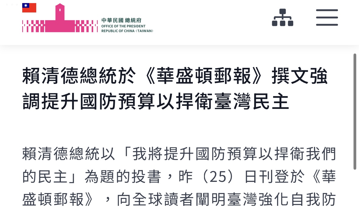 照片取自總統府新聞稿 【聚傳媒奔騰思潮專欄】日前總統賴清德投書《華盛頓郵報》,提出臺灣將於近期規劃史無前例的400億美元(約新臺幣1.25兆元)國防特別預算案,也承諾臺灣明年的國防預算將提高至GDP的3.3%,並會在2030年達到目標的5%。同時,也宣稱中國將於2027年完成武統臺灣目標;另批判中國企圖以武逼統、以武逼降、併吞臺灣,將研擬「守護民主台灣國家安全行動」方案因應。從塑造中國威脅論、武統時間論,鋪陳軍費提升之必要性及合法性基礎。 問題是,臺灣社會對提高軍費在GDP比例具有高度分歧。11月16日台灣民意基金會公布民調顯示,面對天價高額國防預算,約49%民眾表示贊成,近40%不贊成,支持高於反對,但仍反映社會對於「國防預算占GDP3%以上」存在嚴重分歧。顯見,臺灣民眾對此議題存在幾乎南轅北轍的立場,提高軍費在GDP中比例並非僅僅只是預算分配及排擠效果問題而已,更是凸顯鮮明的政治立場與意識形態表徵,如和陸興臺及抗中保臺路線之爭辯。 反對論者認為,大幅增加軍費徒增挑釁大陸風險及兩岸敵對,既拖垮臺灣經濟,也降低民生福祉教育公衛等;主張應以兩岸交流、合作與經貿往來,作為槓桿維繫兩岸和平穩定關係框架。贊成軍備擴張競賽者則主張,唯有投入足夠國防資源,臺灣始能建立可靠有效軍事嚇阻力量,備戰而不求戰,方能避戰。無論是反對或支持意見並非完全毫無道理,關鍵是涉及戰略及路線選擇的思維框架。 從賴清德總統投書《華盛頓郵報》及近期言論歸納,其兩岸論述及路線背後思維框架。首先,建構反中論及型塑中國威脅論。針對中共高層重提統一、統戰,賴強調臺灣必須堅定反對「併吞、入侵、強迫統一」。宣稱面對中華人民共和國前所未見的武力擴張,伴隨著在臺海、東海、南海及印太地區日益升高的挑釁行動,突顯和平與穩定的脆弱性,宣稱中國以武力改變現狀的意圖也越來越明顯。 2025年11月26日,賴總統在國安會議後宣布政府將推動一套「守護民主台灣」的行動方案,同步強化防禦能力、經濟實力與民主防衛機制,以應對來自中國的安全威脅。倡議中國威脅論及訴求中國改變現狀論,藉此強化國防、防禦體系與民主防線目標,印證支撐提高國防預算必要性及合理性。 其次,倚美論及倡議美國霸權穩定論。除論及台灣關係法以及前美國總統雷根對臺「六項保證」(Six Assurances)所奠定的基礎,指出這些承諾是維持臺海和平與印太地區穩定的重要支柱。 同時公開表示臺灣感謝美國總統川普,明確指出美國在全球領導地位的重要性;由於川普政府採取「以實力維護和平」的政策,使得國際社會更安全。強調一個強大且積極參與的美國是維持世界穩定的基礎,防止衝突發生。 此舉形同支持美國為全球超級強權,且贊成提高軍費支撐國防安全。宣稱國防特別預算計畫用於:對美軍購、強化臺灣「不對稱戰力」、發展防空/防禦系統(「臺灣之盾」/T-Dome),以及擴大國內防衛產業、加強科技與韌性投資。 最後,建構臺灣為印太戰略聯盟成員。強調臺灣同樣致力於維護印太地區的和平穩定,儘管解放軍在臺灣周邊創紀錄的軍事襲擾,以及跨越「第一島鏈」進行軍事演訓。臺灣近代史上規模最大的持續性軍事投資,大幅增加臺灣的國防預算,回應面對大陸日益增長的壓力。不僅將用於向美國採購大量新式武器,也要大幅提升臺灣的非對稱作戰能力。同時,臺灣將尋求與信任夥伴及盟友建立更緊密的安全合作關係。 我們進一步檢視臺灣不同政黨主政時期國防預算,及兩岸國防支出比較,將會發現民進黨主政國防支出明顯增加。例如2026年中央政府總預算,國防支出編列新臺幣9,495億元,占GDP3.32%,較2025年年增22.9%,增額1,768億元。「超過3%比例」,在2008年陳水扁總統執政末期、2009年馬英九總統執政初期曾短暫達到。 馬英九總統主政時期(20082016),基本上軍費呈現停滯與GDP比例下滑趨勢,儘管軍費曾宣示要達GDP的3%,但實際並未達,軍費占GDP長期約在1.82.1%間徘徊,成長率偏低,一些年度甚至為負成長。此印證當兩岸關係趨於緩和,兩岸大交流、大合作、大對話及大發展下,軍費支出呈現「節制型國防」特徵。 蔡英文總統主政時期(20162024)則是兩岸關係陷入敵對螺旋,軍費連續成長與特別預算常態化。基礎軍費從2016年約3,557億新臺幣增至2024年6,068億新臺幣,八年增加逾70%;占GDP比例從2.0%增高2.5%以上。自2024年賴清德總統主政後,軍費躍升至戰略轉型等級拉至全新高度,例如追加400億美元(1.2兆新臺幣)特別預算、2026軍費達GDP的3.3%及2030軍費將達GDP的5%。顯然,賴清德政府配合美國川普政府增加盟友提高軍費政策,也意識到未來兩岸軍力結構失衡及臺灣安全的「關鍵窗口期」。 事實上,兩岸軍費差距已呈現絕對規模持續擴大。根據SIPRI與中國官方數據,2024年中國軍費約3,140億美元(SIPRI估算),20152024年成長約59%,長期維持6%8%年增率,軍力現代化迅速,包括火箭軍、艦隊、無人機、電子戰等。 臺灣軍費自2016年起快速上升,但基數仍小。2024年165億美元,20152024年成長約48%,臺灣軍費約為中國大陸軍費的6%7%。兩岸軍費差距比值:2015年約18:1,2024年約19:1。顯然臺灣的軍費成長雖快,但在絕對差距上並未縮小,甚至略為擴大。 回顧馬英九總統主政期間,相對低軍事費用、外交休兵,臺灣反而擁有更高和平穩定安全系數。這證明戰略選擇與政黨輪替、領導人思維框架息息相