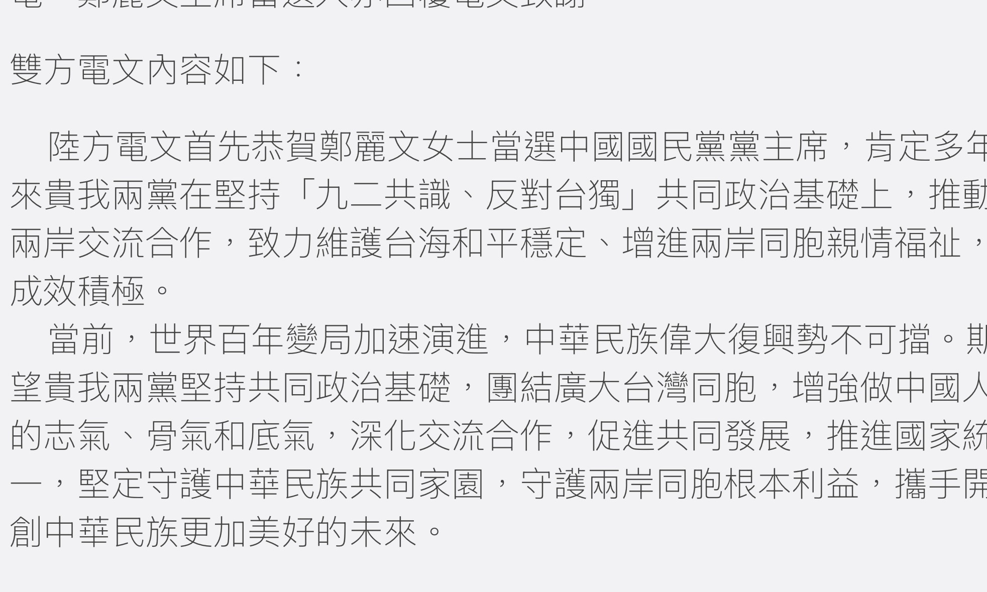 照片取自國民黨新聞稿 【聚論壇奔騰思潮專欄】2021年,朱立倫當選國民黨主席,習近平的賀電提到「統一」二字。當時習近平說要「為國家謀統一」,而這次鄭麗文的賀電則表明「推進國家統一」。我們認為,「謀」是還不成熟、還在醞釀、還在構思如何做的思維概念;而「推進」則是有了明確的路徑、目標和方向,開始準備要動作。 承上可知,中共對臺策略正在隨形勢與態勢的轉化,朝積極、主動、先制出手,冀求能夠有效、務實處理民進黨倚美謀獨,和日推獨,如此,方能由美日扼制民進黨由外而內的謀獨、推獨動作。 本文從三個面向來探討中共對臺策略的運作,從中尋求其運作之變化,做為我方因應之參考。期待對越益複雜與詭譎的兩岸關係,有一些助益,乃為寫作本文之目的。 一、促統、反獨、制獨,均由被動轉為主動 北京長年受困於民進黨的臺獨伎倆,特別是賴清德上臺至今這一年多的時間,北京飽嚐了忽冷忽熱,忽硬忽軟,忽實忽虛的臺獨一系列攻勢。久經戰場之後,逐漸從中理出頭緒,也找到出擊與收手的方法與動作,刻正推出漸進、務實、有效的打擊、抑制、轉化動作與因應方式。 其動作與策略均由原先被動促統、反獨、制獨,轉化主動攻勢之後,不再跟著民進黨和賴清德打轉,而是反躬出擊,採先制攻擊與封鎖並重。將臺獨引動而起的氛圍,在初始階段就斷然切除,不讓獨風飄揚,有效制止獨氣散發,防杜於未然。 另外,對於始終徘徊於外的勢力,亦一改防堵被動之勢,採取內外突穿切斷之力,先切內部獨氣,俟氣消漸止之勢,再快速將外部獨力封斷,內消獨氣,外封獨力,雙向並進,有效斷獨斷力之勢,奏然完封稱效。 二、創新與變革趨勢:主動優於被動;攻勢先於防衛 中共對臺研究的變化與轉化,已先掌握臺灣內部動態,再由大陸方面研析,釐清目標方向與策略定位之後。展開主動掌握動態變化,攻勢出擊先於防衛固守的轉化,在變化與轉化間,找到變化的因,尋覓轉化的果。 因果具象之下,釐清因的為何,找到果的理由,將為何拆解之後,顯現其根本性與必然性的二元因果關係,即從因找源頭與原由;從果理出三個W-What(什麼)、Why(為何)、How(如何)由此,不只看見臺灣問題的表面,更能看見問題的核心。 中共改變主被動態度與攻防態勢,態度主在主動發掘敵情,調製具體可行作戰構想;態勢上轉守為攻,攻心為上,攻城為下。採攻心持久,武力為次的心理重於物理,智慧、計謀動搖心志,使其歸順而來;武力攻城,將留後患,恐使之叛變降敵。 三、臺灣是主體,大陸是控臺,外部是載具 大陸近幾年來,與民進黨政府、美國、日本、歐盟等國家,一連串的爭鬥、較勁、對抗下,發展出一套諸如:大衛伊斯頓(David Easton)的系統論,經由輸入(Input)、轉換(Conversion)、輸出(Ouput)的過程,三向循環成一條回饋鏈(Feedback),而這一套主體+控臺+載具的三方互動、互賴立體運作,即是既聯合、又分裂、三面處理的運作過程的總合。 經由這套系統運作過程之後,大陸對臺政策,已由傳統的所謂「養、套、殺」進階到系統化與科學化(臺灣是主體,大陸是控臺,外部是載具)並用。 承上,即大陸操控兩岸關係,由臺灣的主體性,轉為大陸主導兩岸關係,使主控易位,藉由稀釋減弱外部勢力,使其載具為大陸操控,其走向皆在陸方操控中。因而大陸在兩岸這個領域,已不畏美國勢力的介入,相對地,從不可控轉為可控可管,一切就在不言中得利。 總之,兩岸分裂分治,自1949年迄今76年,中間歷經多次的風風雨雨,中共對臺策略也更替無數次。在當前兩岸關係如此嚴峻複雜情勢下,中共從吃虧中找到因果關係,也從變化中理出理由,更從前述兩者中,找到上述三個策略運作變化。 是以,面對當前如此嚴峻複雜的兩岸關係,以及國際情勢如此詭譎多變。中共為了實現中華民族的偉大復興,必然不會讓臺獨思維與動作,持續醞釀與推動不停。就此研判,中共制獨、滅獨之力,只會加大加深。而其對臺策略首要手段與目標,必然是打擊民進黨推獨與動獨之勢,因而,中共必將以內外之力,嚴厲剷除獨性與獨調,以遂其一國兩制之要務。 而民進黨為確保基本盤不動,其獨勢與獨力,必然加深加巨,用以維獨用獨,擴大抗中保臺力道,摧毀國共合作關係。借此,加深抹紅國共害臺、壞臺之事,掀動國民黨地方實力,意圖拉近2026地方選舉局面。若然,則守住2028大選之勢,則對民進黨較為有利。 為此,未來民共惡鬥力爭之勢,必然圍繞在推獨、動獨與制獨、滅獨之上。而中共對臺首要策略,必然是斷獨在先,促統推進之雙向合進之勢。是以,兩岸民共之鬥極為險惡而深入,會否走向鬥而破裂之局,實在令人憂心而沉重。 作者為中華戰略暨兵棋研究協會研究員
