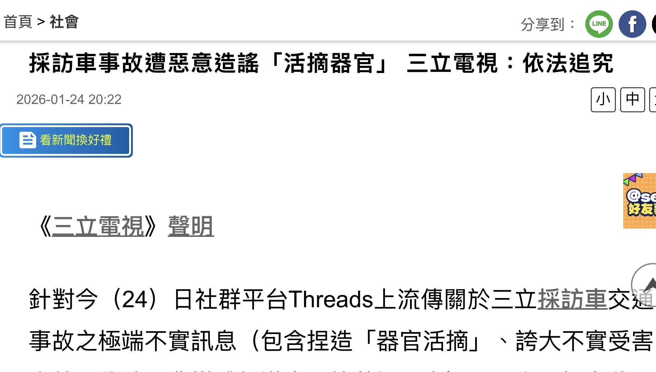 照片為三立新聞網截圖 【聚論壇王其專欄】三立電視台上周突然成為熱搜新聞,先是周三董事長張榮華談大同寶寶,才過兩天,三立採訪車就撞進彰化銀行,釀10人輕重傷。這兩件事看起來沒有關係,但在其他媒體經營者眼中,不免擔心,三立轉型不斷,風暴不停,考驗沒有林崑海時代的三立,張榮華如何再攀高峰? 三立上周五這場景很尷尬。先前因為在台北捷運中山站犯下隨機殺人重案的張文,選擇在上(12)月19日周五假期前一天下班前人潮最多時下手,因此這幾個禮拜來,碰到星期五,各媒體都緊繃神經,怕下個張文又來了,當然也包括三立新聞部門的媒體人。沒想到上周五下午,也是跟張文犯案時間同樣3點多,也在南京東路,不過這次在捷運松江南京站出口,離張文犯案中山站一公里多,但出事的卻是三立媒體,也傷了10人。 一輛三立電視台採訪車在上星期五下午3時,於台北市中山區一江街準備轉進南京東路時發生意外,車輛不明原因直直撞進位於南京東路二段98號的彰化商業銀行吉林分行,現場一共10人受傷,其中有3人重傷。稍早,有目擊民眾的行車紀錄器拍下車輛撞擊銀行的瞬間,只見絲毫未減速,直直撞進銀行內,駕駛有輕傷,供稱當時車輛轉速突提高,疑似有踩不到煞車的情況而釀禍。 三立電視台馬上發聲明道歉,「針對今(23)日下午三點左右,本台採訪車不幸發生之交通意外,造成民眾受傷及彰化銀行分行設施毀損,三立電視深表歉意」。三立電視表示,「目前首要工作是確保傷者獲得妥善救治。本台已立即派員前往醫院慰問關懷,並將全力協助傷者及家屬所需之醫療照護與後續處理。對於本次事故造成之人員傷害與相關損失,本台將依法律規定辦理賠償與相關責任事宜,請傷者與家屬安心療養。」 三立危機處理很快,但採訪車出事,造成10人輕重傷,在過去的電視媒體是沒有的。說巧也巧,採訪車出事的前兩天,這期的《今周刊》上星期三出版,也是三立董事長的張榮華,以大同董事長身份接受專訪,大談他接任這家百年老牌公司5個月來的心路歷程。 這些年,三立集團積極轉型並擴張版圖,除了媒體本業,還接手機電老店大同,投資土地,並布局綠能產業,不過風波也沒有停過。三立參與三地開發旗下的三地能源,但三地集團老董事長鍾嘉村出事正交保在外,迫使1600多億資產的三地集團賣百億土地自保;此外,三立轉投資的盧米埃電影,參與儲能電池模組為主業的天宇私募認購。更早前2019年,集團以三立影城名義買下埔心牧場,卻引來與前桃園市長鄭文燦間政媒互利土地利益的傳言。 周刊還報導說,三立電視今年1月中也辦理現增,每股溢價兩百元,募資12億元,張榮華透露,將用來「升級軟硬體設備並加大策略性投資」。有線電視收視戶數直直落,廣告收入日益下滑,都讓張榮華感受影視傳媒的寒流早來了,促使三立迫切地找新出路。 面對這些伴著爭議而行的轉型,張榮華在訪問中說,「轉型必須往上走、往未來走,而不是往下走。」為了崢嶸而上,他舉自己過去從錄影帶批發跨足節目製作,再進入有線電視為例,每一次轉型都是向上與延伸未來。 但報導中沒特別提到三立多年不斷轉型中兩大關鍵,其一,前老董林崑海的角色與政治上的關係。其次,大同剛被大陸法院判決罰款131億元新台幣,消息出來,股價重挫。今周刊這篇報導,据了解也是為了救上海判決的危機處理方式之一。可惜文章才發表兩天,還沒享受到媒體市場紅利,三立電視採訪車就出事了。 三立電視原由林崑海與妻弟張榮華共創,張榮華對內做內容,人稱海董的林崑海主責投資與對外政治關係。2000年陳水扁執政後路線上靠近綠營,先拍與阿扁有關的八點檔戲劇,林崑海甚至加入民進黨出馬選立委,後成立海派支持謝長廷系統,後改為湧言會。講到綠媒,三立必為首,其次才是民視。三立也因為綠媒而得以在媒體營運上有寬廣的發展,奠定第一名電視台的基礎;但也因為這樣政媒難分難捨,張榮華曾想過不要被貼綠媒而要轉型,有一度曾經只講三立集團而不談三立電視,並且與中國建立影視內容交流管道。 張榮華在海董2022年初過世後獨立撐起三立一片天,碰到媒體被網路超車走下坡,更急著轉型找更大出路,投資經營大同就是在這個前提下跑出來的案子。但才進大同5個月,百年老店從沒碰過的鉅額罰款,卻讓張榮華碰上,而且還是政治上最敏感的中國。 話說大同子公司台灣華映因連帶保證,而與中國華映有賠償官司,中國大陸最高人民法院2025年12月13日判決大同需賠償中國華映人民幣30.29億元(約新台幣131億元)確定;由於每股影響逾6元,茲事體大,大同上月15日股價受重擊,直接以跌停價31.6元開出,意外被利空打到的投資人也爭相賣出持股,一開盤跌停委賣張數就衝高至超過4.6萬張。 為降低影響,大同在12月13日舉行的重大訊息說明會中強調,將依大陸司法救濟途徑提請再審,並根據台灣法令阻止其在台灣執行,並強調公司目前資金充沛、財務結構健全,依最近期經會計師核閱的財務報告,現金及約當現金近287億元,資產總計近1480億元,資金充裕,足以應對突發性財務風險。但這判決重擊才剛接董事長的張榮華,甚至三立媒體。甚至也有人引陰謀論說,中國在向綠媒三立下馬威,看三立如何應付。 三立不斷轉型,也不停有新的大事跑出來考驗領導人。海董在的時代有,張榮華接下董事長,也跑不了這些煩惱。 當然,也有人認為,日本媒體集團的成