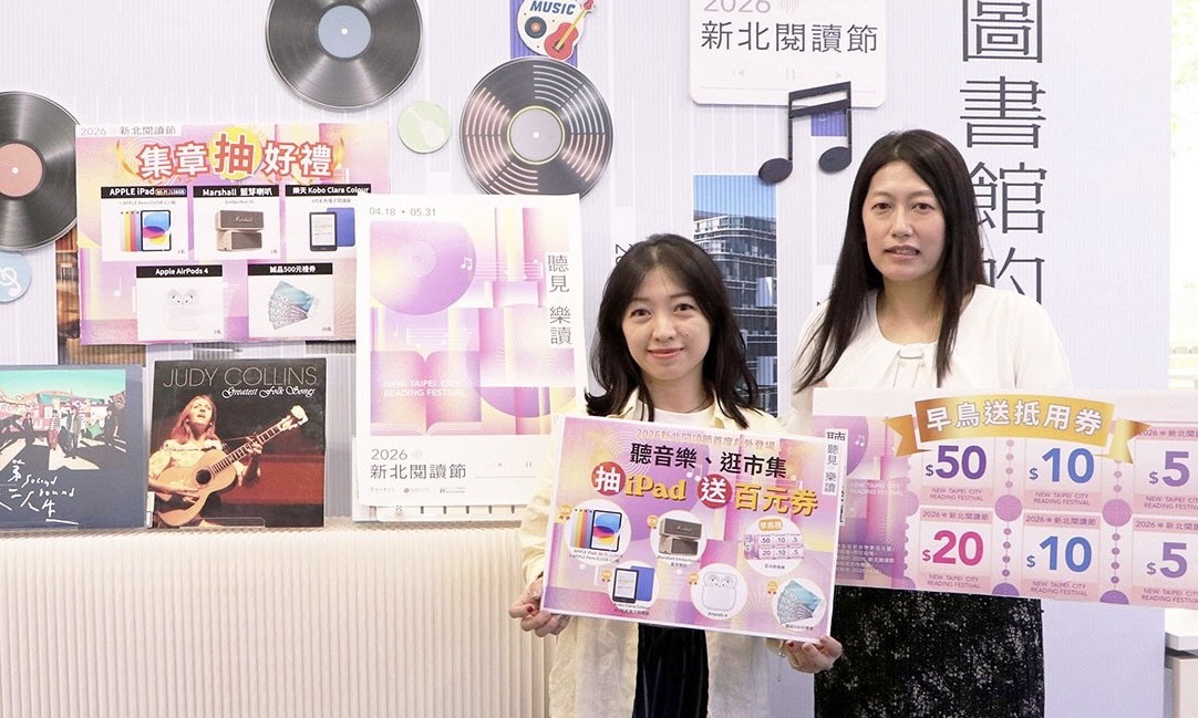 照片取自新北市政府 【聚傳媒特約記者陳欣如報導】2026新北閱讀節「聽見‧閱讀」將於4/18(六)、4/19(日)在三重向日葵廣場登場,以「閱讀市集派對」的形式打造結合音樂、閱讀與生活風格的閱讀活動。除了有戶外閱讀市集,還有Jazz live band、黑膠DJ派對、Swing Dance互動、不插電演唱、陌生書桌、親子繪本講座等多元活動,邀民眾一起來聽音樂、逛市集、享閱讀,還有機會抽中價值萬元的iPad。 「新北閱讀節」為新北市年度閱讀盛會,今年以「聽見.樂讀」為主題,將於4月18日(六)正式展開。新北市立圖書館吳佳珊館長表示,今年閱讀節首度移師戶外舉辦,並且結合音樂,打造「閱讀市集派對」,希望讓民眾以更輕鬆的方式享受閱讀。現場集結50個閱讀市集攤位,涵蓋獨立書店、文創手作、音樂與美食,並打造五大主題閱讀空間,包括「山海ZONE」、「舒壓ZONE」、「懷舊ZONE」、「森活ZONE」及「童心ZONE」,融合音樂與互動體驗,讓民眾在不同情境中自由穿梭、拍照打卡,在音樂陪伴下享受閱讀的多元樣貌。參加市集互動闖關還可以免費兌換限量的風格閱讀角紀念品。 閱讀市集派對首日除了有長達6小時不間斷的音樂演出,還有趣味的互動式閱讀體驗,規劃25個特色攤位,呈現新北各區閱讀風貌,並搭配集章闖關活動,民眾完成指定體驗即可集章,集滿10枚可兌換100元抵用券,集滿7枚則可參加抽獎,獎品包括iPad+ Apple Pencil、藍牙喇叭、電子閱讀器與無線耳機等。另外還有結合音樂與運動的「動能閱讀場」,邀民眾一邊慢跑、一邊聆聽有聲書,開啟閱讀的多元感官體驗。 4月19日(日)則以親子共享閱讀為主軸,規劃繪本故事劇及魔法氣球互動秀等親子互動活動,另外還有「陌生書桌」活動,邀民眾帶著自己喜歡的書,在音樂與輕食陪伴下一起閱讀,為城市閱讀增添更多想像。現場亦設置漂書專區,讓民眾可自由取閱,增進閱讀分享與交流。此外,活動兩日還有多場免費手作體驗課程,包括4/18(六)「類比浪漫—音樂盒手作」、「漫步普羅旺斯—紫色薰衣草扭扭棒植栽」、「把大自然摺進書本裡—摺紙手作活動」、「粘忘凡親子繪本講座」、「大自然生態書籤」;4/19(日)「長頸鹿最特別」、「露營好有趣」、「兔子躲藏大挑戰」繪本故事等。