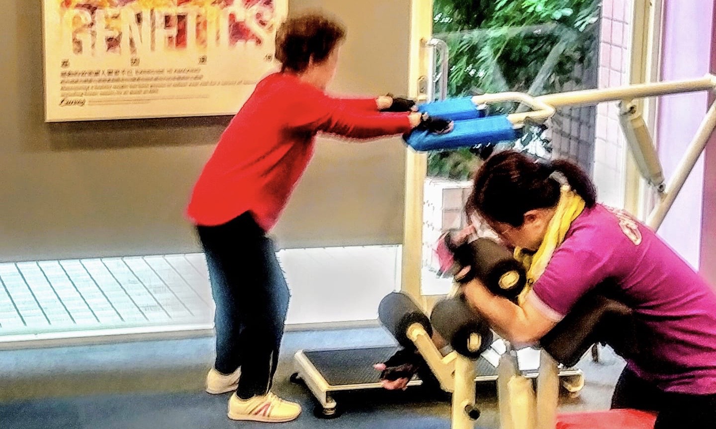 沒想到真的是親眼看到80歲李奶奶上健身房認真運動,她臉色紅潤彭皮沒有什麼皺紋斑點,洋溢活力的幸福感,外表完全看不出來80歲,我跟她聊天,她說她工作到70歲才退休,家人朋友都對她很好,她喜歡走走看看,堅持「好命要能吃能動」沒有想太多就來報名健身房運動。