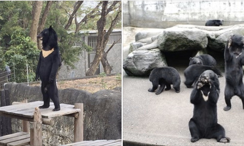 最近因為疫情,陪孩子在家看電影,韓國最近拍的兩部片子都跟這兩張照片有關係,真的是人假扮熊,只不過一個是白熊、一個是熊貓。