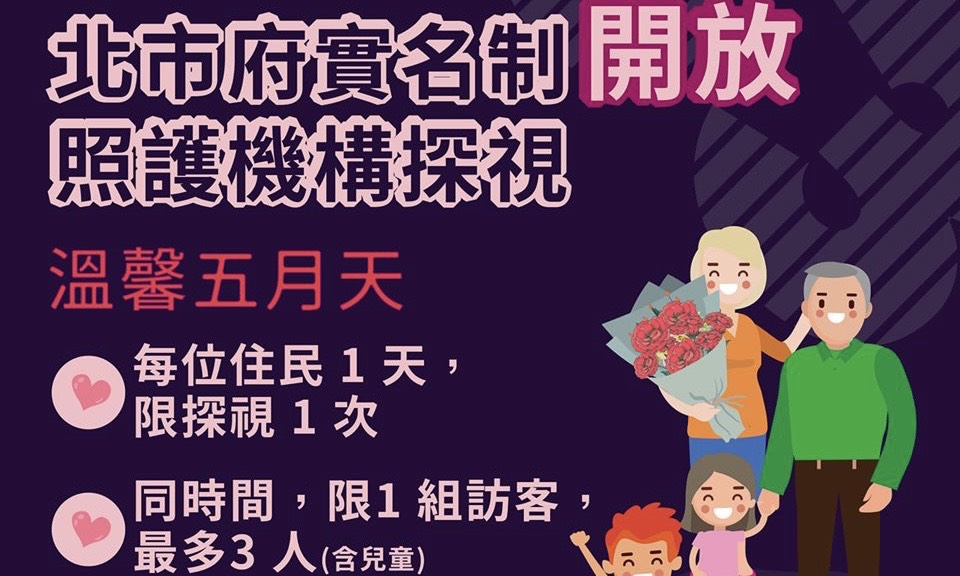 在三月底時,當時疫情考量,台北市的照護機構採取了「視訊探視」方式,以確保長者健康安全。這陣子國內疫情趨緩,連25天無本土案例,臺北市政府衛生局配合中央流行疫情指揮中心開放訪客實地探視,仍有一些限制,希望大家在疫情期間仍務必配合。
