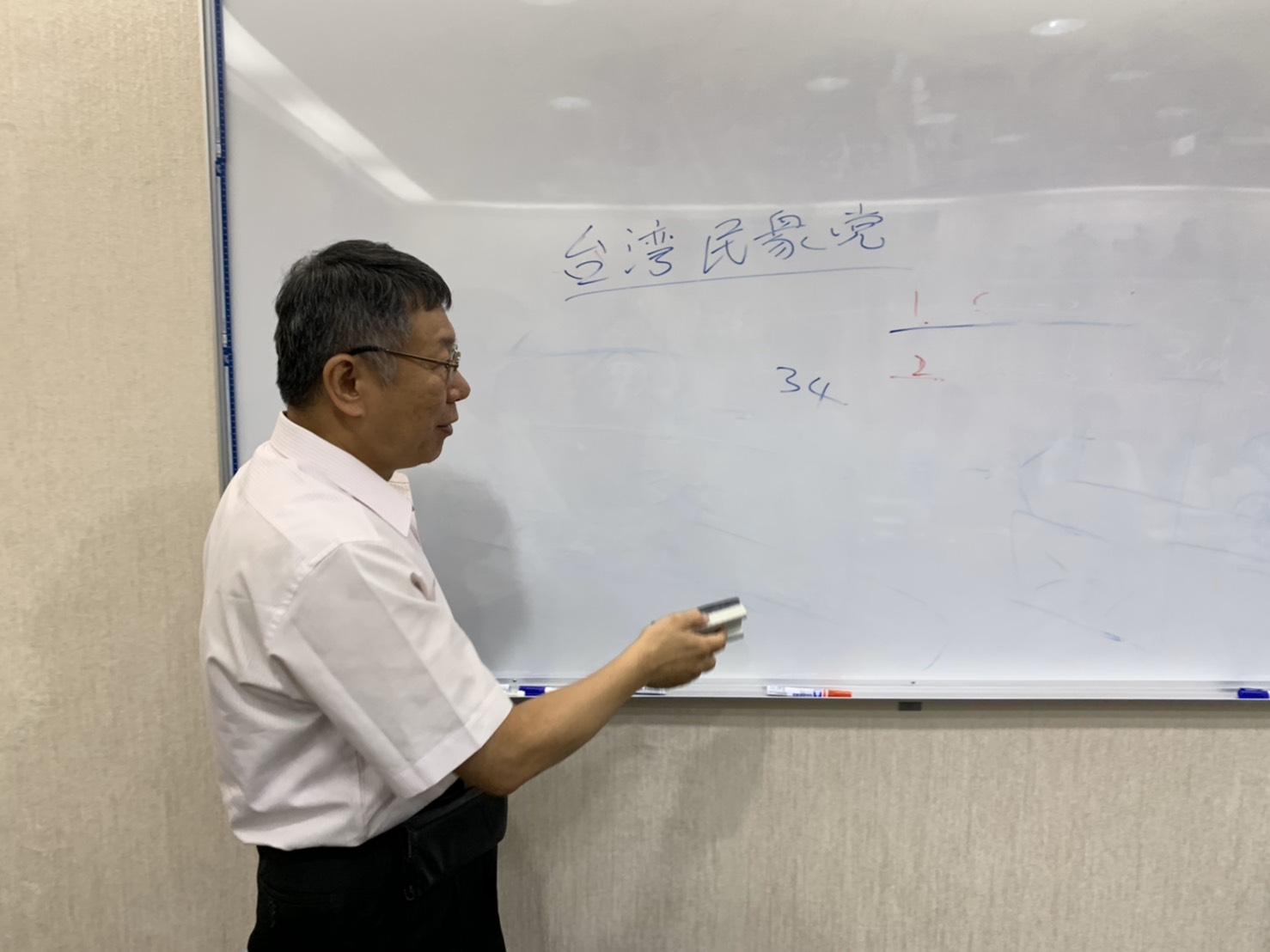 生活 獨家曝光:柯文哲為台灣民眾黨命名的一刻 2020-05-15 17:50 4355 列印 -A+ 【特約記者陳冠宇報導】愛傳媒獨家取得第三大政黨台灣民眾黨命名那一刻的重要照片。 從照片可以看出,柯文哲用他獨特的「柯氏字體」,在白板上寫下了「台灣民眾黨」五個字,隨即又寫了3、4兩個阿拉伯數字,要強調的是他創黨的三個理念與四大價值。 根據查證,拍照日期是2019年7月17日,時間大概是下午一點。 關鍵字 柯文哲 上一篇 亞馬遜面臨重大危機 下一篇 疫情下的政府制度大啟示 即時新聞 嘉市查獲大型電子煙倉庫 華江橋臺北端機車引道4/11-5/2週末夜間改道 台灣牛哪裡來?史料推翻荷蘭人從東南亞進口之說 板橋路口設「自動化人行道遮陽傘」 2026南投百K小鎮漫遊4/18登場 北市河濱公園5/1新增4處科技執法 熱門新聞 文化廣告超強 AI製作MV《BOOM&SHINE》登場! 元宇宙趨勢大調查 年輕女性是主力 口罩戴三年!「心觀世代」不忍了,文化廣告號召IG濾鏡脫口罩 原來台灣曾經薪水這麼高、房價這麼低! 推薦閱讀 嘉市查獲大型電子煙倉庫 2026-04-10 13:21 華江橋臺北端機車引道4/11-5/2週末夜間改道 2026-04-10 12:00 台灣牛哪裡來?史料推翻荷蘭人從東南亞進口之說 2026-04-10 07:40 板橋路口設「自動化人行道遮陽傘」 2026-04-10 06:20 2026南投百K小鎮漫遊4/18登場 2026-04-09 13:00 北市河濱公園5/1新增4處科技執法 2026-04-09 12:55