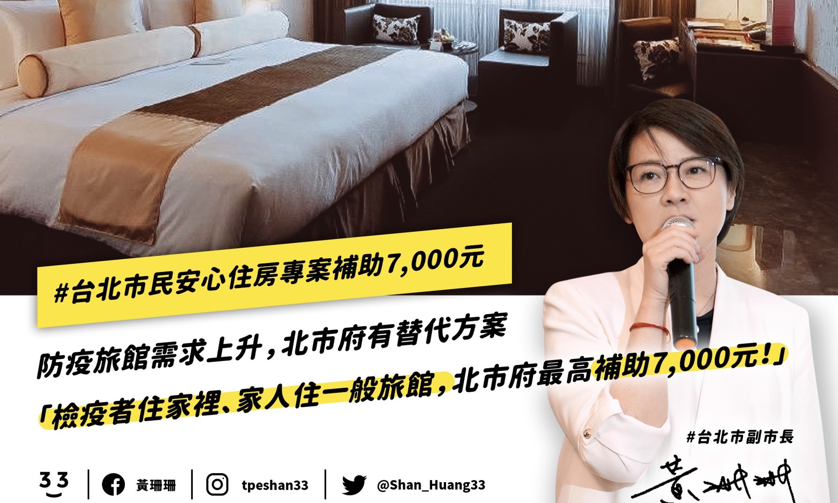 很多人以為防疫旅館要增加就可以馬上增加,其實是做不到的!第一:防疫旅館要業者自願,第二:要員工全體同意,第三:要經過完整訓練及動線與SOP管制,不是要設就可以設,就是因為怕防疫旅館供不應求,所以台北市很早就訂出另一個方案:家人出去住正常旅館,把家留給國外回來居家檢疫對象,台北市民只要有旅館收據及居家檢疫通知書就可以跟台北市政府申請7000元補助款。(正常旅館也可以增加收入)