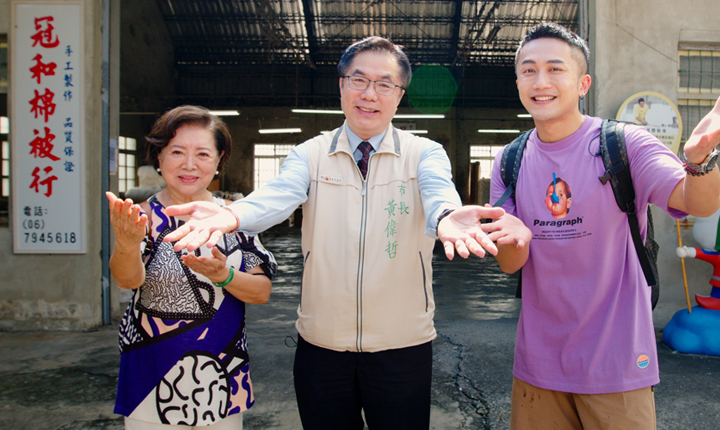 圖/台南觀光大使陳淑芳與市長一同至將軍苓仔寮打棉被。(台南市政府提供)