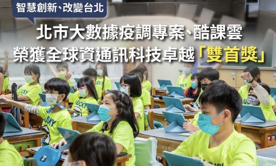今年有來自全球共115件提案,臺北市摘下了政府類的雙首獎,分別由資訊局「大數據疫調專案」取得傑出醫療應用首獎,及教育局「酷課雲」拿下傑出數位教育學習首獎,首獎數超越新加坡與香港,成為全球之冠!