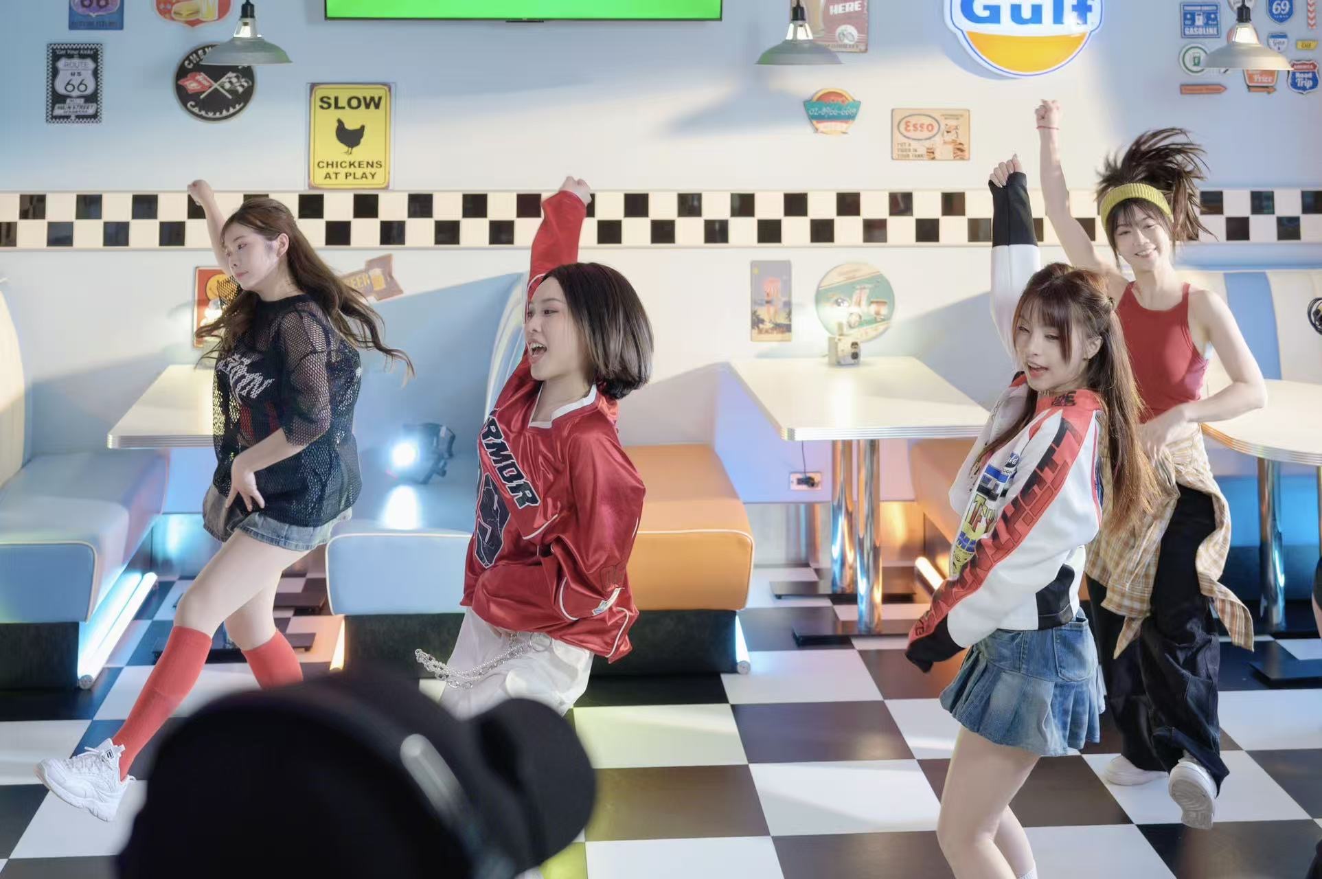 啦啦隊成員牙牙則身兼舞蹈老師,在片場指導動作,讓舞蹈呈現更專業俐落;星岑則以自然活潑的表現,為 MV 增添更多青春氛圍。三位好友的默契合作,讓整支作品充滿活力。