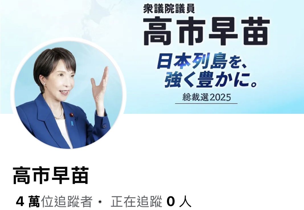 【聚傳媒張競評論】日本自由民主黨黨魁選舉,高市早苗順利出線當選黨魁,依據當年日本國會議員席次結構,若無意外,應可順利接任總理大臣,創下日本政壇首位女性擔任總理大臣歷史紀錄。