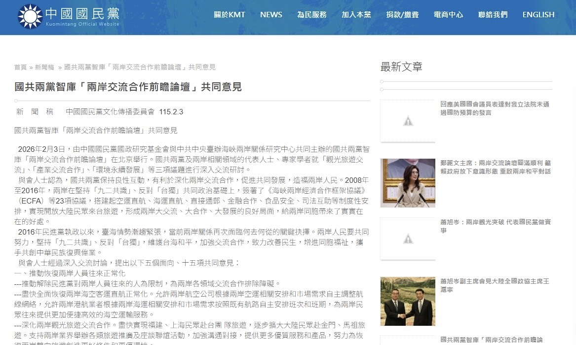 第三,累積可視成果的政治資本。若兩岸交流能促成觀光、航班或產業合作的局部解凍,將有助於轉化為執政績效。此恰可印證國民黨兩岸路線更具有治理能力,能夠處理兩岸交流衍生問題及創設雙方共贏領域。