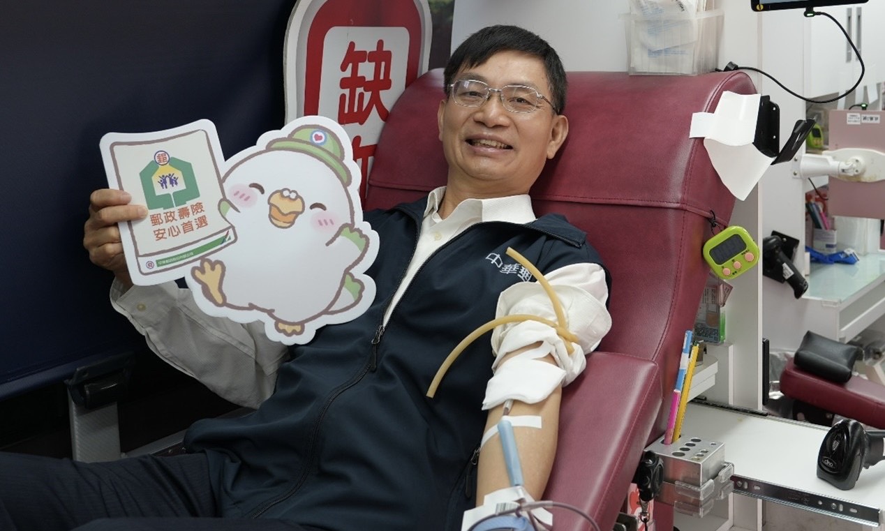圖說:中華郵政公司鄭至能副總經理親自挽袖捐血,以實際行動傳遞關懷與責任。