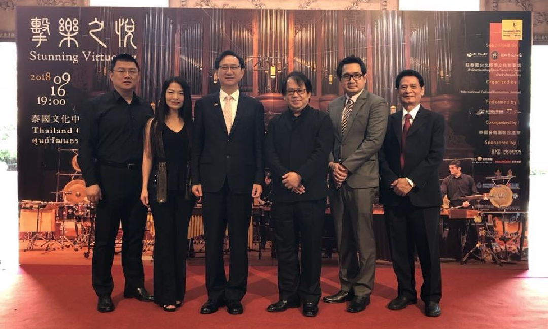 - 泰國的僑社對於藝文活動一向熱衷,對於來自台灣的表演團隊,更是不遺餘力地大力支持。這次得知打擊樂團受邀參與藝術節,即將到曼谷來演出,僑社即主動地給予實質的支持,以極大的盛情為我們在舉辦這個演前記者會。在僑界朋友們積極規劃,並與主辦單位和代表處連絡後,不但在票房的推動上幫了非常大的忙,更營造出一股勢如破竹的氣勢,非常感謝!