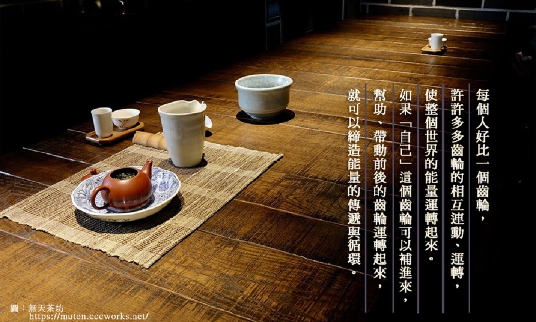 鄭老師︰無天茶坊就是一個平台,去實踐、成就你的願力。生命有兩個部分︰自我肯定和自我實踐。兩者都有就是完整的生命。每一個人的長才、專長,是老天給予的,讓我們以此去服務別人。