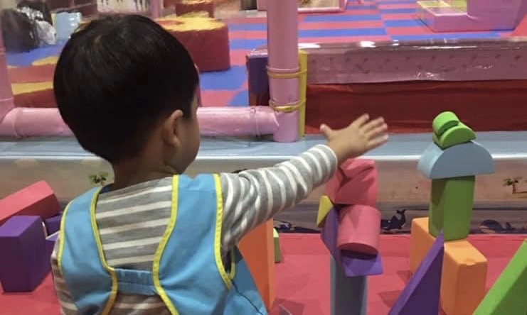 他是我的孫子,正坐在地板上玩積木。「小東西,回家嘍!」爺爺帶你回家找奶嘴。