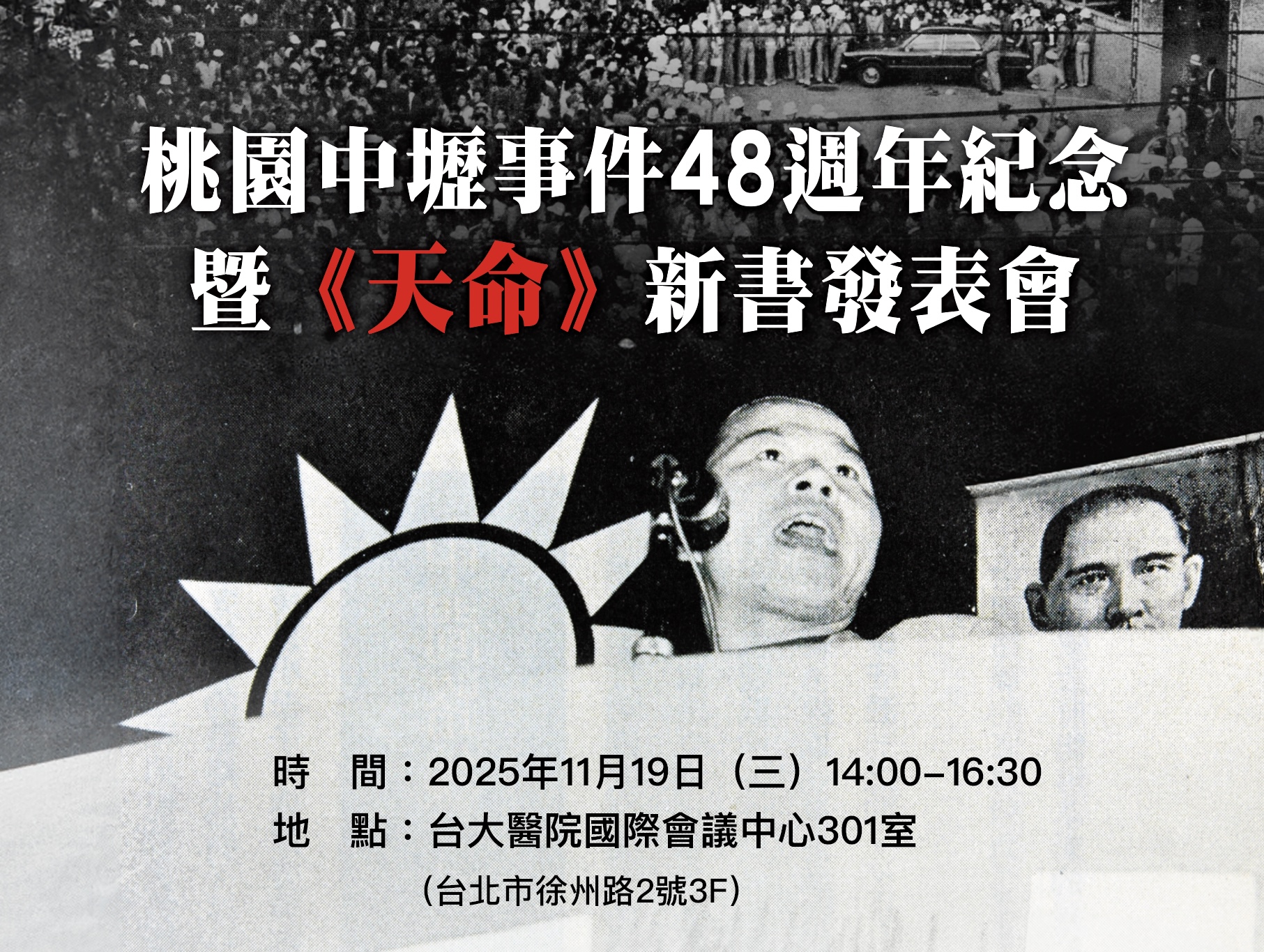 照片為活動海報截圖 【聚傳媒特約記者陳冠宇報導】1977年的秋天,一場撼動臺灣的政治風暴,不僅改寫了地方選舉的結果,更在威權體制上撕開一道關鍵裂縫,透出民主初生的微光。48年後,這段震盪歷史的親歷者——臺灣民主運動代表人物許信良,將於2025年11月19日(三)下午在臺大醫院國際會議中心,推出其重量級新作《天命:臺灣民主運動者許信良的一生見證》,帶領讀者回望那段波瀾壯闊的民主啟蒙,同時紀念「桃園中壢事件」48週年。 這不只是一場新書亮相,更是一場跨越半世紀的深刻對話,是向臺灣民主精神致意的時代集會。 「你是個藝術家,不適合從政」一句預言,開啟一段天命。 先將鏡頭拉回許信良決定從政的那個瞬間。當年,政大恩師鄒文海曾語重心長地勸阻:「你是個藝術家,你不適合從政!如果一定要從政,你會闖大禍的!」這句聽來像預言的警語,如今回望,卻恰恰成為許信良政治生命中最準確的註腳。 許信良終究沒有選擇安穩之路,而是以理想主義者的勇氣投身政治洪流。1977年,他以「新精神、新人物、新桃園」為競選口號,溫和卻有力地挑戰威權。他沒有猛烈批判,卻用理念敲醒沉睡的社會,使人們開始追問:沒有民主精神與承擔的人,能否帶來真正的希望? 中壢事件:點燃臺灣民主的引信 正是這股甦醒的民意,點燃了「中壢事件」的火種。這場事件,是臺灣人民首次以群眾力量直面不義的選舉操控,既撼動當年的政治局勢,更迫使威權體制第一次感受到來自民間的壓力,成為臺灣民主化的重要起點。 《天命》以許信良的親身經歷為軸線,細緻重現中壢事件的每一段轉折;更從思想、行動與歷史脈絡,描繪臺灣民主化如何從壓迫中萌芽、從抗爭中成長。透過第一人稱視角,讀者將看見一位理想青年如何在時代巨浪裡,選擇挺身而出,並以生命回應信念。 深度對談:讀懂天命,看見時代。 本次新書發表會邀請作家、評論家楊照擔任與談人,由時報文化出版董事長趙政岷主持兼與談。 楊照將從歷史與文學的交會處切入,探討許信良的英倫留學如何塑造其民主理念,並分析他如何將歐洲政治哲思轉化為臺灣社會運動的實踐能量。這場對談,不只是回顧一段歷史,也是對臺灣未來政治文化的深度啟發。 書中呈現許信良從青年知識份子轉為行動者的心路歷程,他對民主的執著、對土地的情感,都將在這場發表會中被重新理解並深受感動。 誠摯邀請:見證歷史,思索未來 「天命」二字,承載著使命,也象徵著時代的召喚。許信良的一生,正是對臺灣民主運動的「天命」最具體、最生動的證明。 時報文化出版誠摯邀請所有關心臺灣民主、熱愛歷史與思想的讀者,參與這場兼具歷史分量與時代意義的盛會。讓我們一同走入這本關鍵性的歷史之書,汲取前行的力量,並思索臺灣民主未來的可能。 活動資訊 •活動名稱: 桃園中壢事件48週年紀念 暨《天命》新書發表會 •主講人: 許信良 •與談人: 楊照 •主持兼與談: 趙政岷 •時間: 2025年11月19日(三)14:00–16:30 •地點: 臺大醫院國際會議中心301室(台北市徐州路2號3F